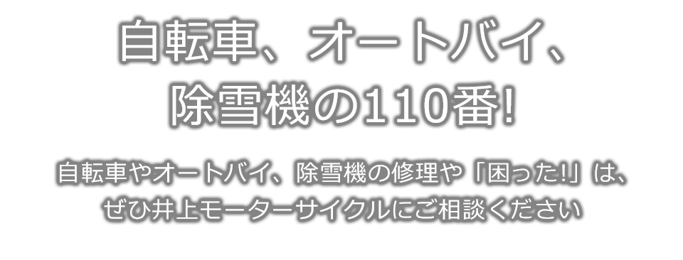 また「自転車・オートバイ・除雪機の110番」をモットーに、故障修理も承っております。出張修理も行っておりますので、お気軽にご相談ください。